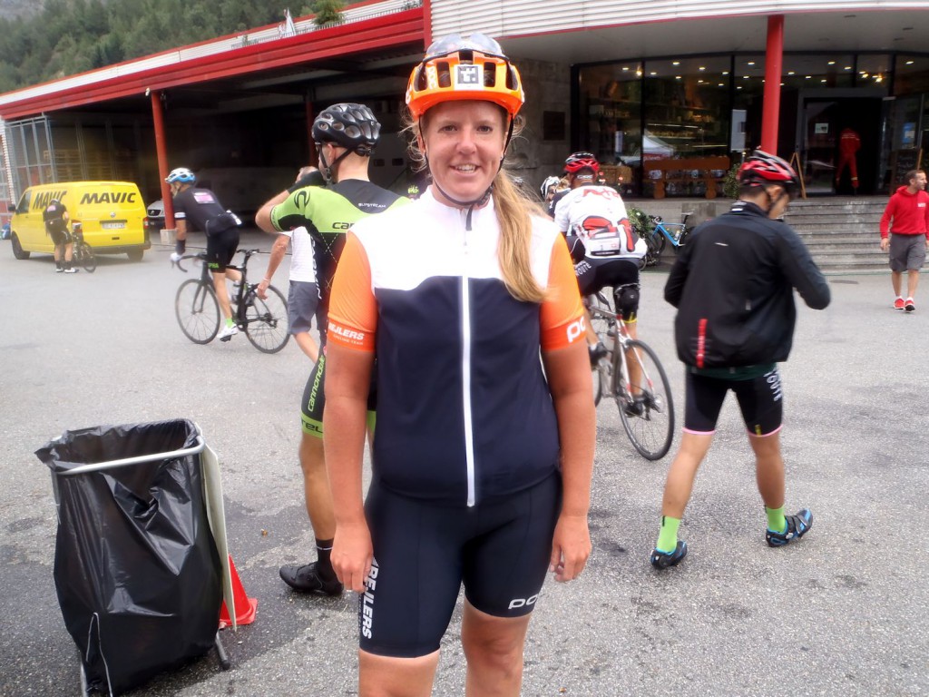 Det går långsamt att ta sig upp men det går, jag harvar bara på och den känns ändå ganska ok. När jag når toppen så är det återigen lite kyligare, 10 grader men inte som uppe på Fukarpasset med regnet och 7 grader, USCH! Rullar snabbt ner igen och möter de sista tävlande som är på väg upp.