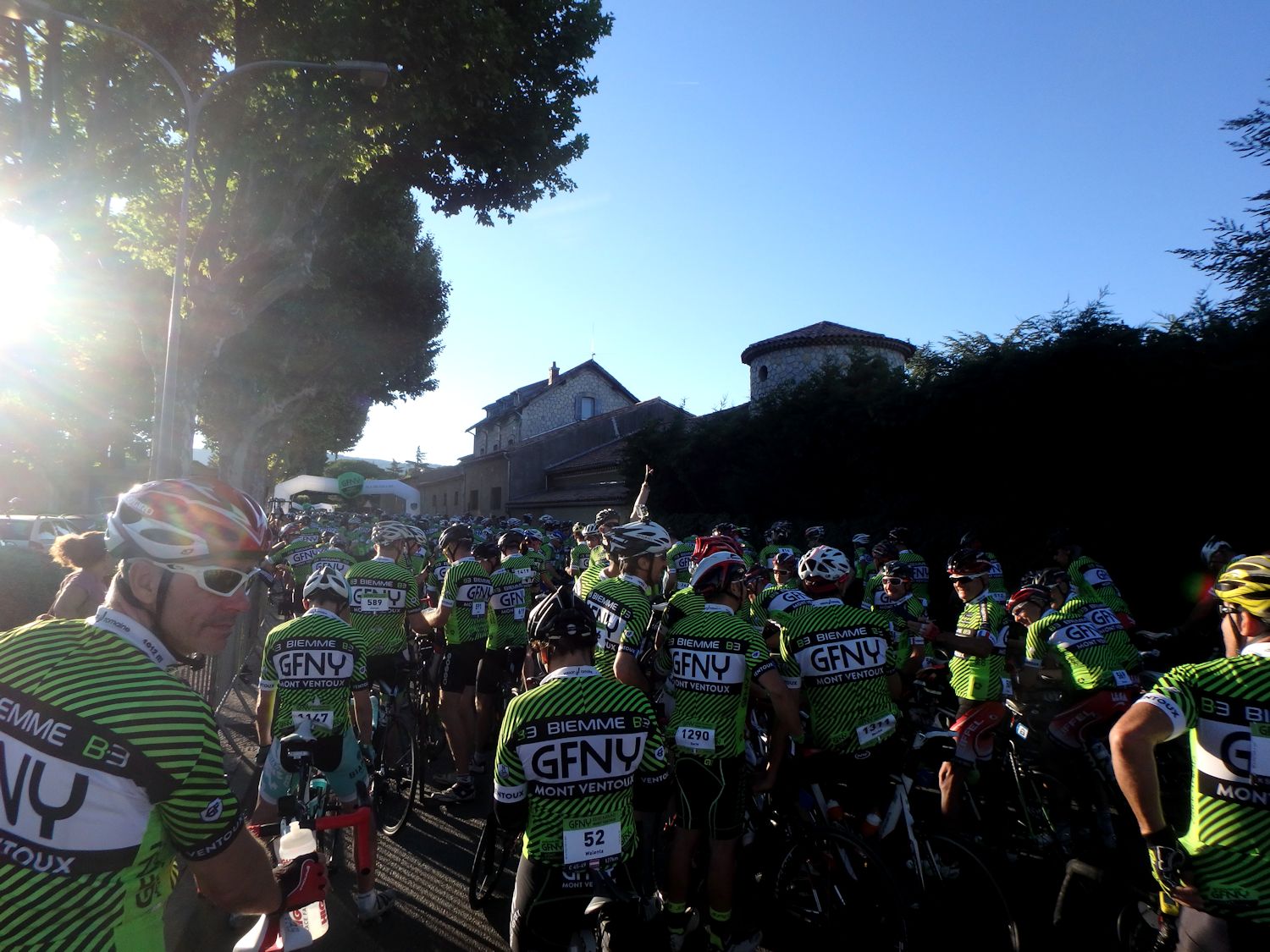 Starten var tänkt att gå 7.50, det skulle vara 23 grader redan så dags. När vi kommer ut ur huset redan strax efter 7.10 så rullar vi ner mot start och precis då rullar en startgrupp iväg. Det blir mycket dividerande “men vi åker med“, “men tänk om vi blir diskade?”, “men alla är inte här” och så vidare… grupptrycket blir för stort och även fast jag ogillade det skarpt paragrafryttare som jag är så rullar jag iväg 7.14 med dom andra. Jag ville inte vänta kvar ensam och tänkte att det är ju skönt att få det lite svalare på morgonen och stryker dom tiden så vad spelar det för roll? Vi har ju fortfarande cyklat loppet oavsett. Det känns lite konstigt att dra iväg så oförberett men också skönt.
